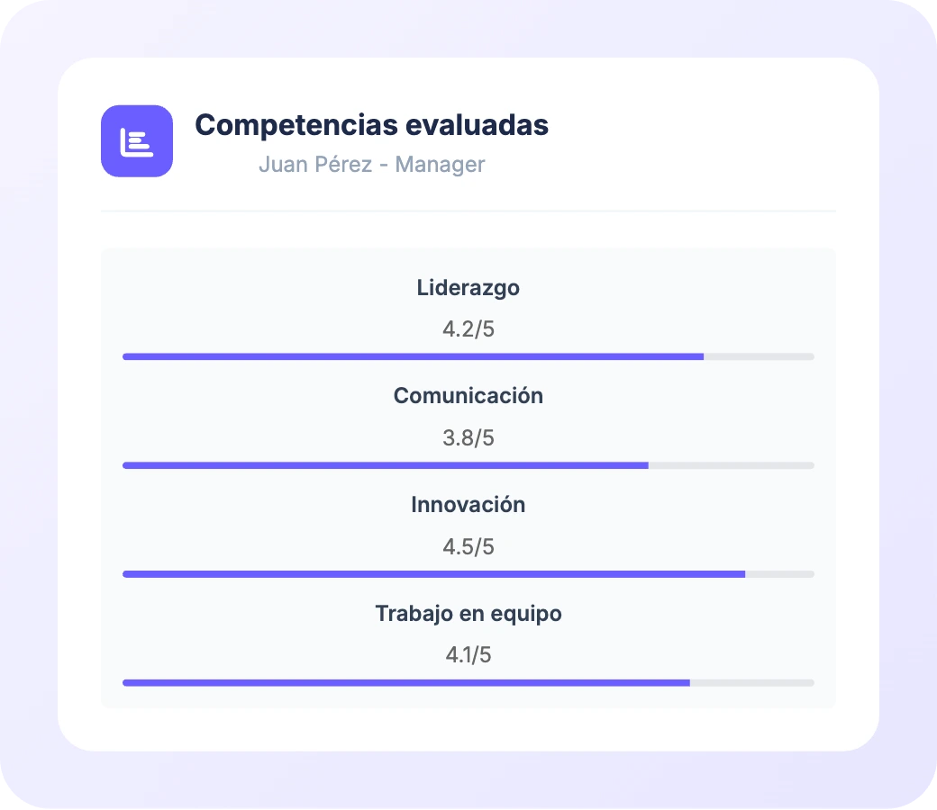 Resúmenes con IA: Resume evaluaciones y sugiere acciones. Detecta gaps de competencias automáticamente.