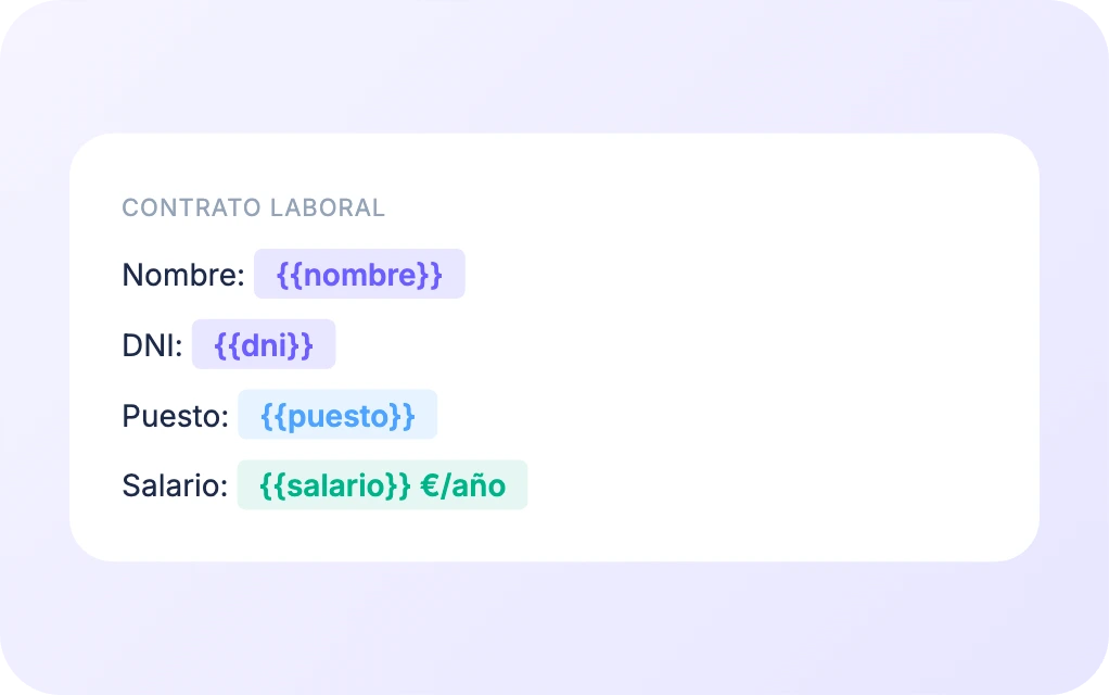 Crea documentos con 3 tipos de campos: texto (el empleado escribe), casillas (marca opciones) y desplegables. El empleado completa los campos vacíos cuando recibe el documento.