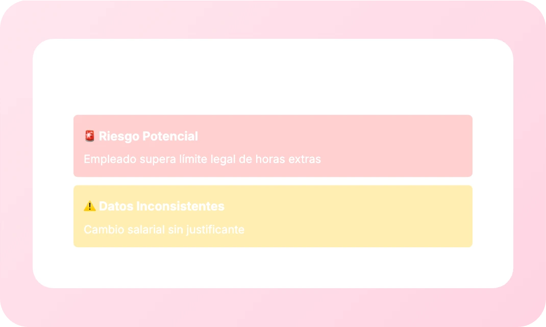 Nuestro motor de IA analiza millones de incidencias para identificar anomalías. Detecta casos como cambios de datos inconsistentes, acumulaciones inusuales o posibles fraudes.