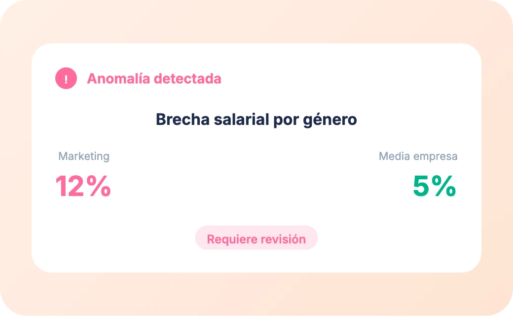 Cumplimiento automático de igualdad retributiva por género, nivel y antigüedad. Identifica desviaciones, compara contra sector. Reportes auditables. En 2026, transparencia salarial es obligatoria: Sesame garantiza cumplimiento legal.
